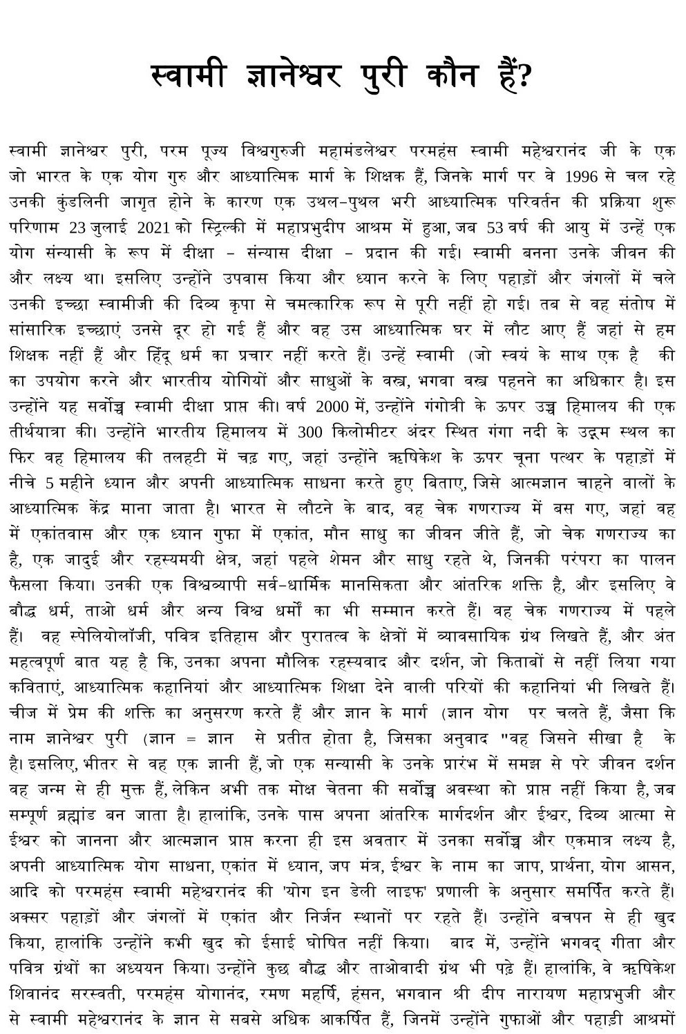 Swami Gyaneshwarpuri SWAMI GYANESHWARPURI POUSTEVNÍK